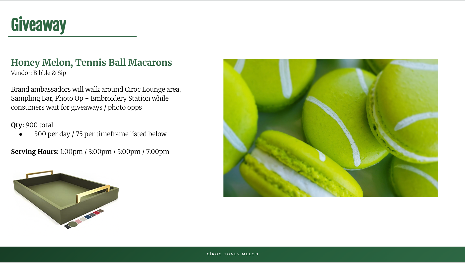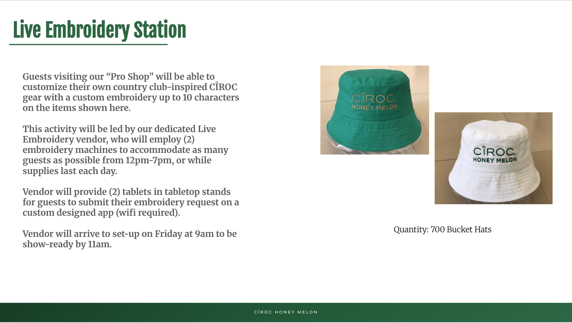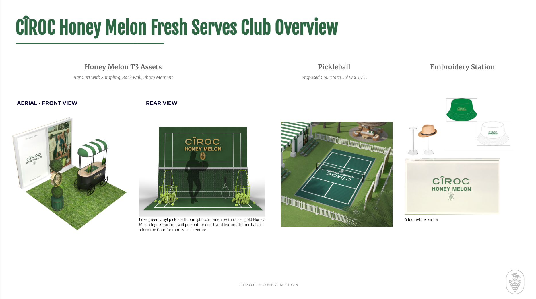NVE CREATIVE DIRECTOR To celebrate the debut of CÎROC Honey Melon, Summer Club was reimagined as the Fresh Serves Club—a playful, country-club–inspired destination designed for discovery and connection. A branded pickleball court, curated cocktail sampling, custom embroidery, and vibrant social moments created an immersive environment that brought the spirit of the new flavor to life.