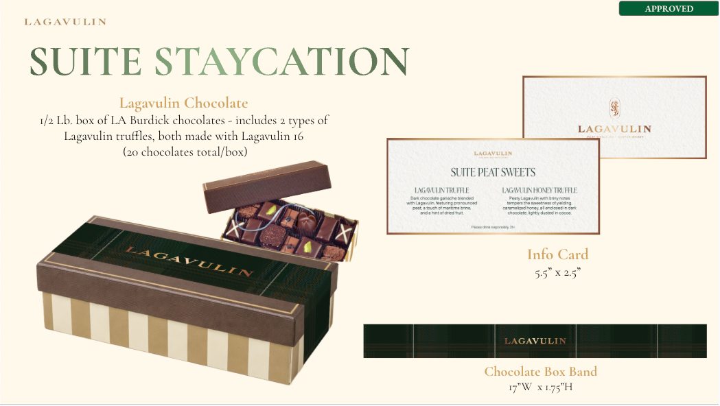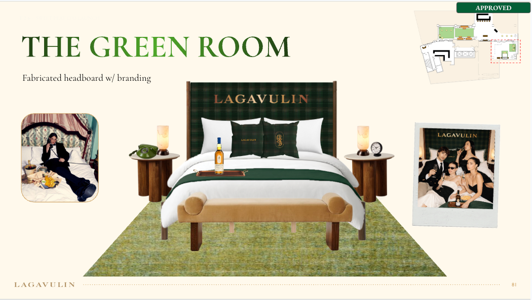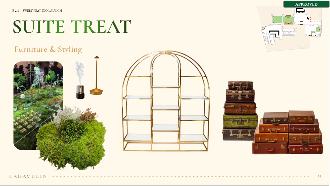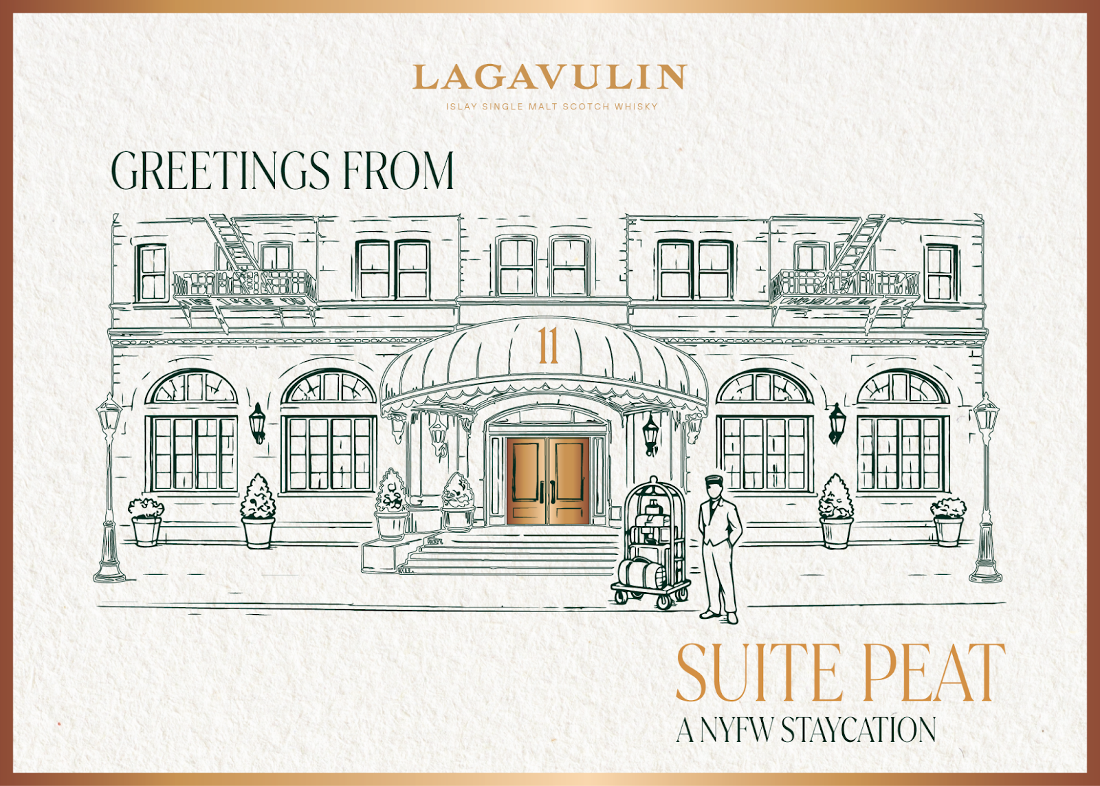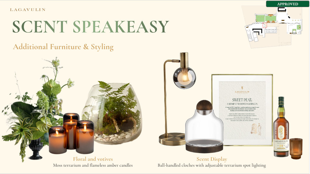 NVE CREATIVE DIRECTOR We transformed Lagavulin’s Sweet Peat launch into “Suite Peat,” an immersive hotel-inspired world unveiled during New York Fashion Week. Through theatrical hospitality, interactive scent rituals, and elevated signature serves, media and tastemakers experienced the whisky in a layered, fashion-forward setting designed to spark discovery and connection.